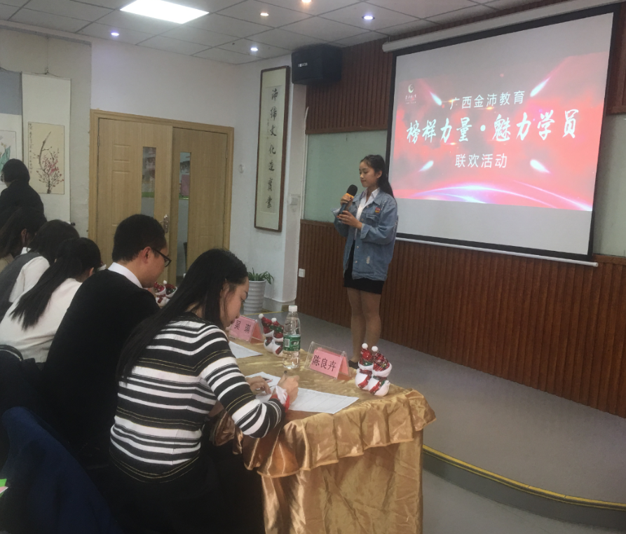 本次活動(dòng)由廣西金沛教育發(fā)展有限公司南湖校區(qū)主辦,旨在通過(guò)本次的匯報(bào)演講,促進(jìn)學(xué)員交流。金沛教育領(lǐng)導(dǎo)及金沛高級(jí)教師到現(xiàn)場(chǎng)觀摩了學(xué)員的演講,并為獲獎(jiǎng)選手頒獎(jiǎng)。