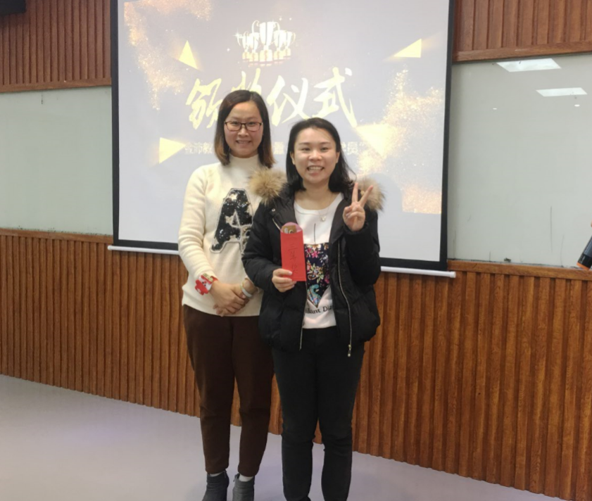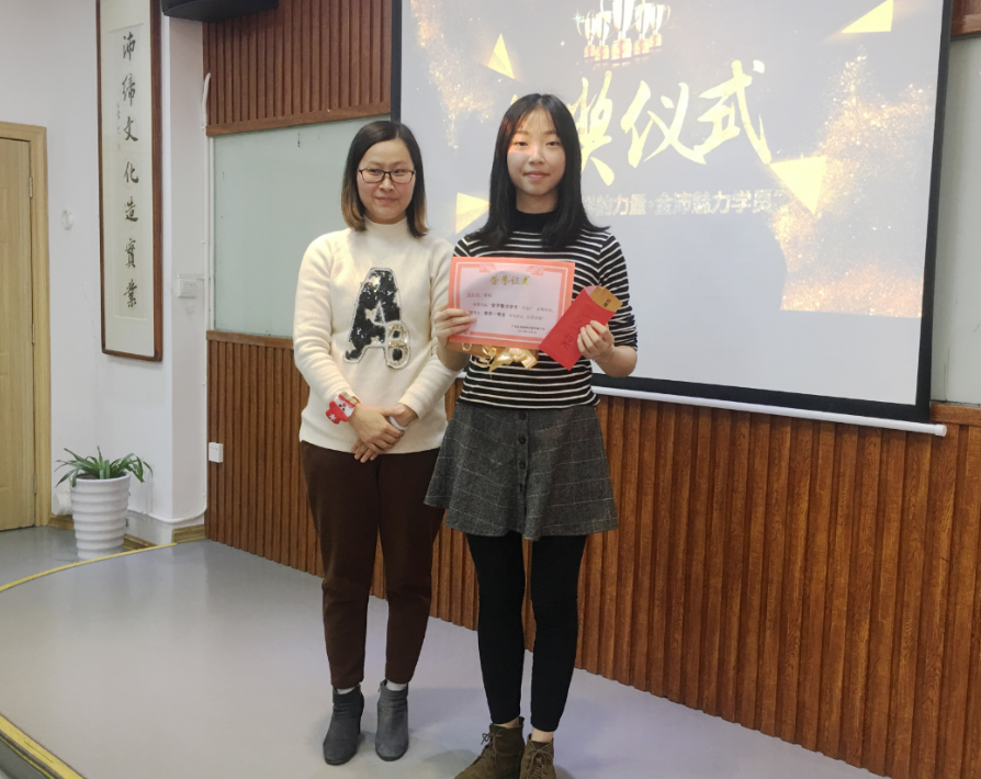 金沛南湖校區(qū)張金雪校長(zhǎng)為鄢玲格頒發(fā)一等獎(jiǎng)
