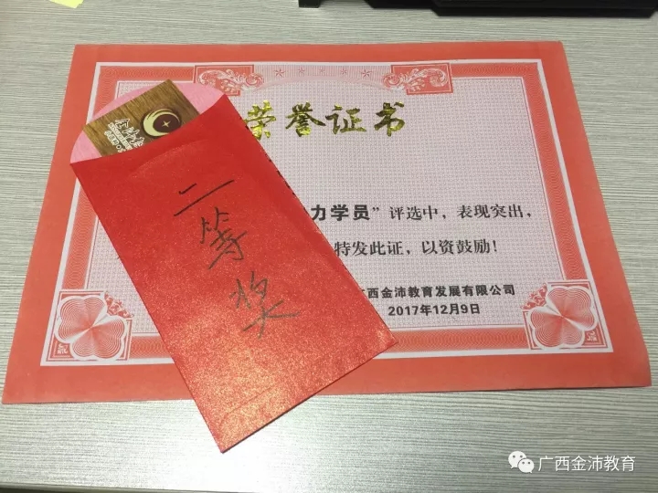 李珩立學(xué)員獲得二等獎(jiǎng)獎(jiǎng)金及證書(shū)