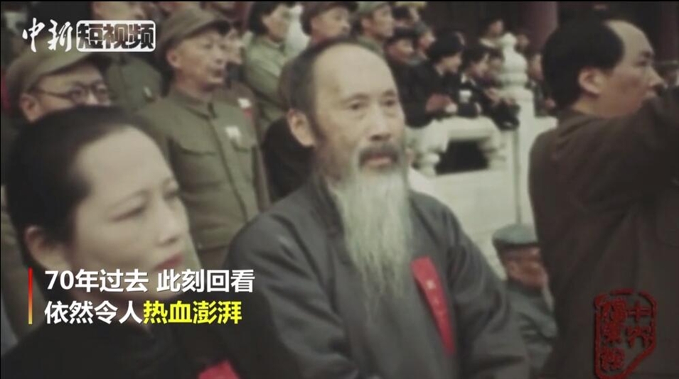 下午三點(diǎn),典禮正式開始。“我們親聆毛澤東主席向全世界宣告中華人民共和國(guó)中央人民政府成立了。接著是奏國(guó)歌、升國(guó)旗,激越的軍樂(lè)聲響徹云霄。我們都情不自禁高聲唱起國(guó)歌,目送著五星紅旗冉冉升起,心潮澎湃。”王明愛回憶道。