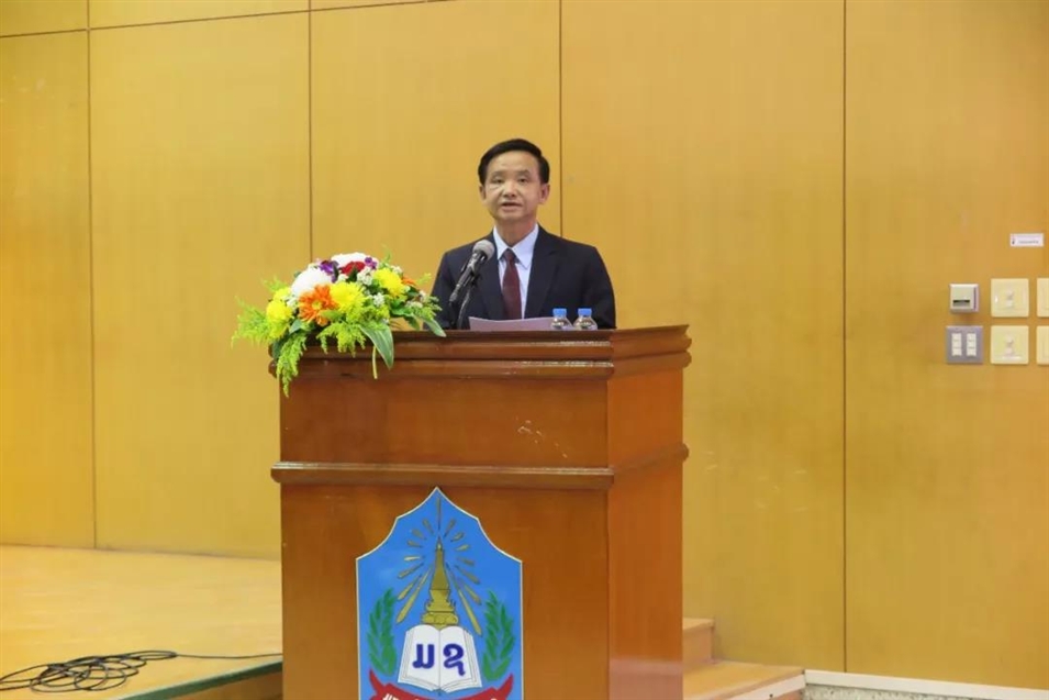 老撾國(guó)立大學(xué)副校長(zhǎng)洪佩·占塔馮致歡迎辭。他代表老撾國(guó)立大學(xué)全體師生對(duì)許琳參事及代表團(tuán)一行到來(lái)表示熱烈歡迎!洪佩·占塔馮副校長(zhǎng)回顧了老撾國(guó)立大學(xué)孔子學(xué)院從建立到快速發(fā)展的歷程。他說(shuō),許琳參事在任孔子學(xué)院總部總干事、中國(guó)國(guó)家漢辦主任期間,對(duì)老撾國(guó)立大學(xué)孔子學(xué)院的發(fā)展給予了熱情關(guān)懷,并大力推動(dòng)“中國(guó)政府援老撾國(guó)立大學(xué)孔子學(xué)院項(xiàng)目”的落實(shí),他代表國(guó)立大學(xué)對(duì)許琳參事表示衷心感謝!他同時(shí)還表示,許琳參事本次講座的主題非常有意義,對(duì)教育全球化的發(fā)展提出了機(jī)遇和挑戰(zhàn),也有利于促進(jìn)老撾國(guó)立大學(xué)鏈接區(qū)域與國(guó)際的未來(lái)發(fā)展。