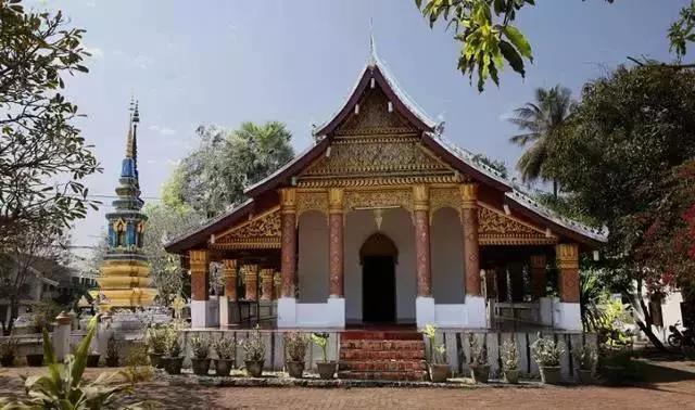 邁佛寺是瑯勃拉邦最著名的寺廟之一,也是這里最大,裝飾最華麗的寺廟。寺廟建于18世紀(jì),座落于王宮博物館附近。寺內(nèi)供奉著一座綠寶石鑄成的佛像。邁佛寺的建筑風(fēng)格比較特別,其五層檐的佛殿遵循了典型的瑯勃拉邦風(fēng)格,但通常建在旁邊的回廊卻建在了山墻的位置,很不尋常。邁佛寺曾經(jīng)毀于入侵者手中,除了主殿外其他建筑大部分是重修的。寺廟的前廊有裝飾華麗的柱子和奢侈的純金浮雕。浮雕敘述了佛祖生平和老撾雨神的故事,也有來(lái)自羅摩衍那和鄉(xiāng)村生活的場(chǎng)景。在重要的節(jié)日里,勃拉邦佛將從皇宮博物館里請(qǐng)出放在這里供信徒們參拜。