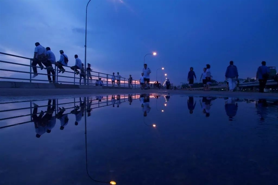華燈初上,褪去了燥熱的湄公河,涼風習習,心曠神怡,沿河漫步的人們伴著落日余暉徐徐而來,恍惚間讓人生出人間天堂的幻覺。
