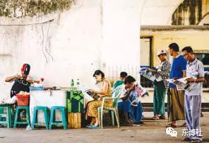 緬甸街上閱讀報紙的人們