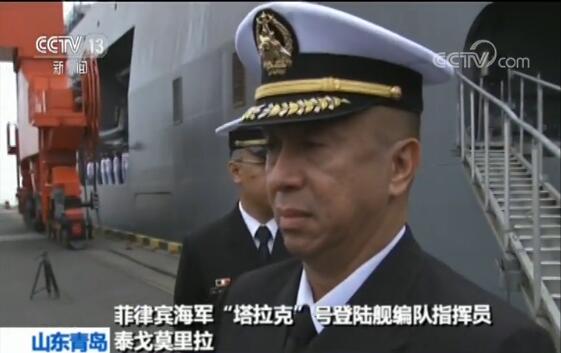 菲律賓海軍塔拉克號登陸艦編隊指揮員 泰戈莫里拉:是的。首先,我想代表菲律賓政府、菲律賓軍隊、菲律賓海軍,以及我們的海軍司令羅伯特·埃姆佩德拉德將軍,表達對于邀請我艦參加中國人民海軍成立70周年慶典的感謝。我艦的到來代表著菲海軍與中國海軍締結(jié)更加密切關(guān)系,以及與各國海軍加強友誼與合作關(guān)系的強烈意愿,除了參加國際海上閱兵式之外,我艦還將參與一些建立互信機制的活動,我們會邀請貴方的海軍及政府領(lǐng)導人參加。我艦還將舉辦文化交流活動,包括技術(shù)交流和開放日活動等,所有這些活動的目的都是為了加強各國海軍之間的友誼以及促進國際和平與各方合作,我們很期待接下來的這五天。