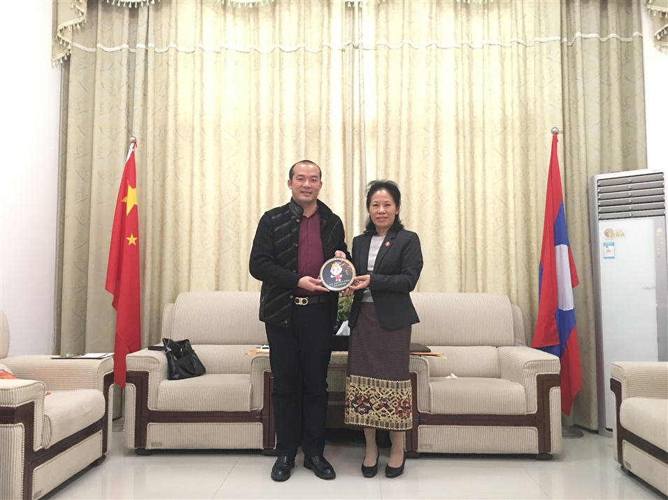 我司向老撾人民民主共和國駐南寧總領(lǐng)事館贈送我司吉祥物紀(jì)念品